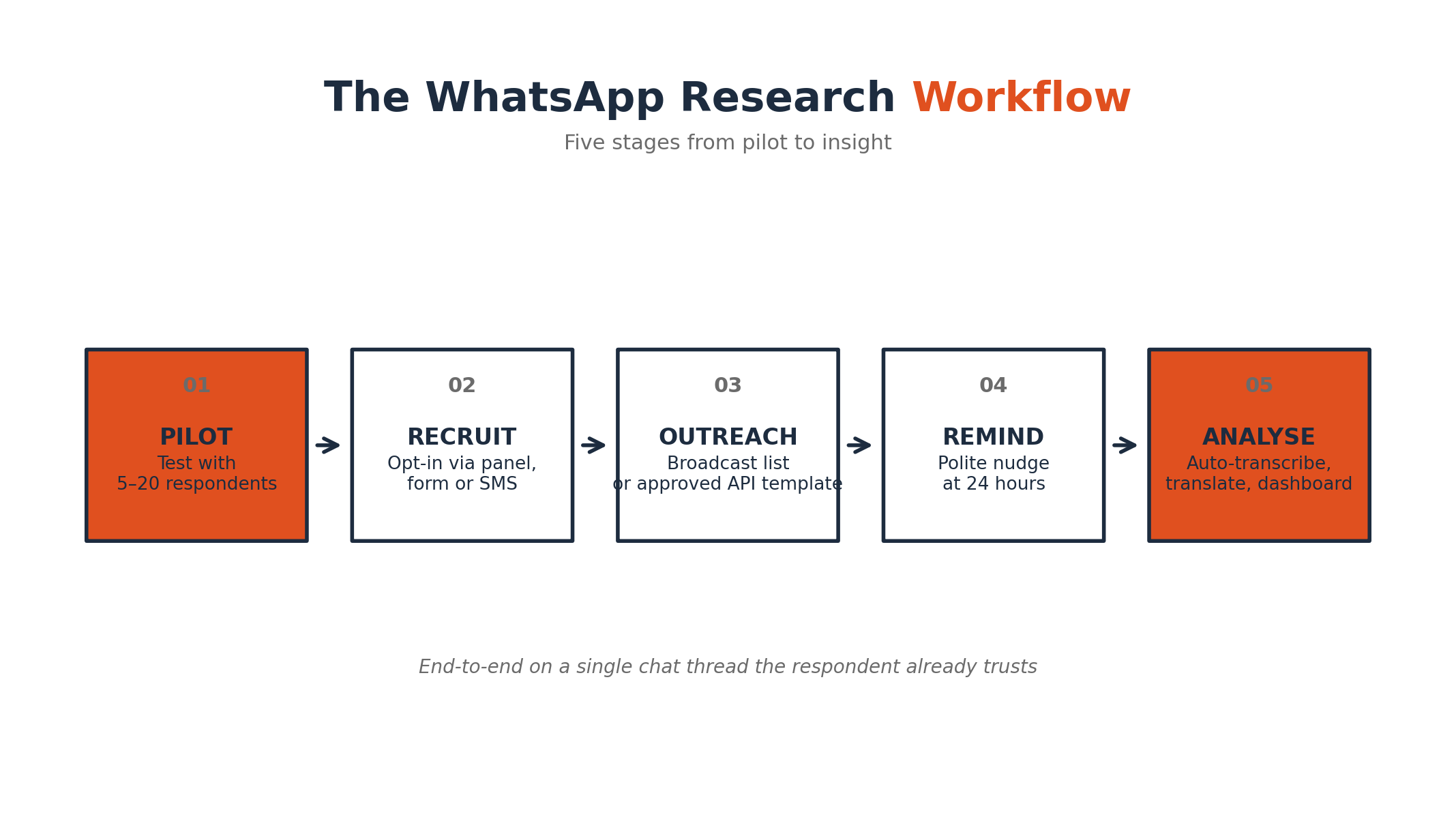 You can use the free WhatsApp Business App for small scale surveys with a few hundred people using broadcast lists. However, for larger, automated studies with advanced logic and data management, you need to use the WhatsApp Business API, which is accessed through automation platforms.